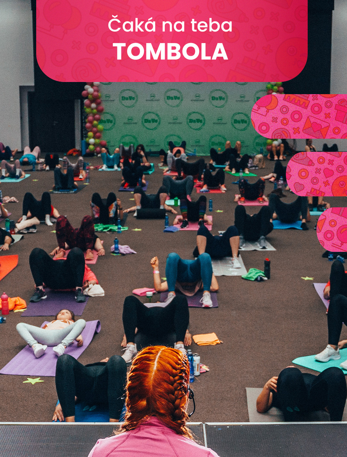 Skvelá atmosféra, kopec energie a motivácie, rôzne druhy tréningov naživo s DaVe trénermi, LIVE DJ, balíčky od sponzorov, tombola a meet & greet s Dávidom a Veronikou.
